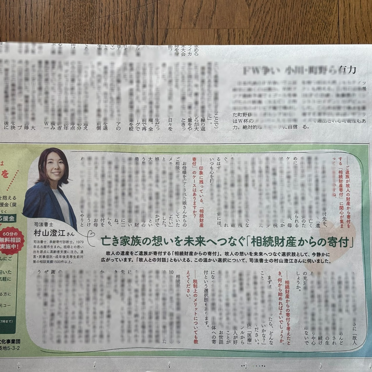 日本経済新聞夕刊に村山澄江の成年後見に関する取材記事が掲載されました。